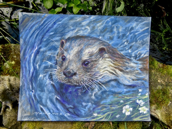 This is a little pastel sketch 24x30cm of one of the otters often seen on the River Kent in the South Lakes.